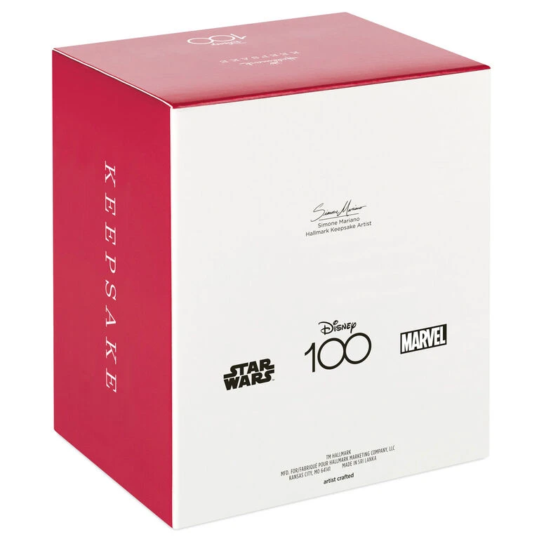 Celebrate 100 years of Disney wonder with this set of four Christmas tree ornaments. Includes beloved heroes from Star Wars (Chewbacca and Grogu) and Marvel (Black Panther and Spider-Man), each with a brushed nickel finish and colorful accents.