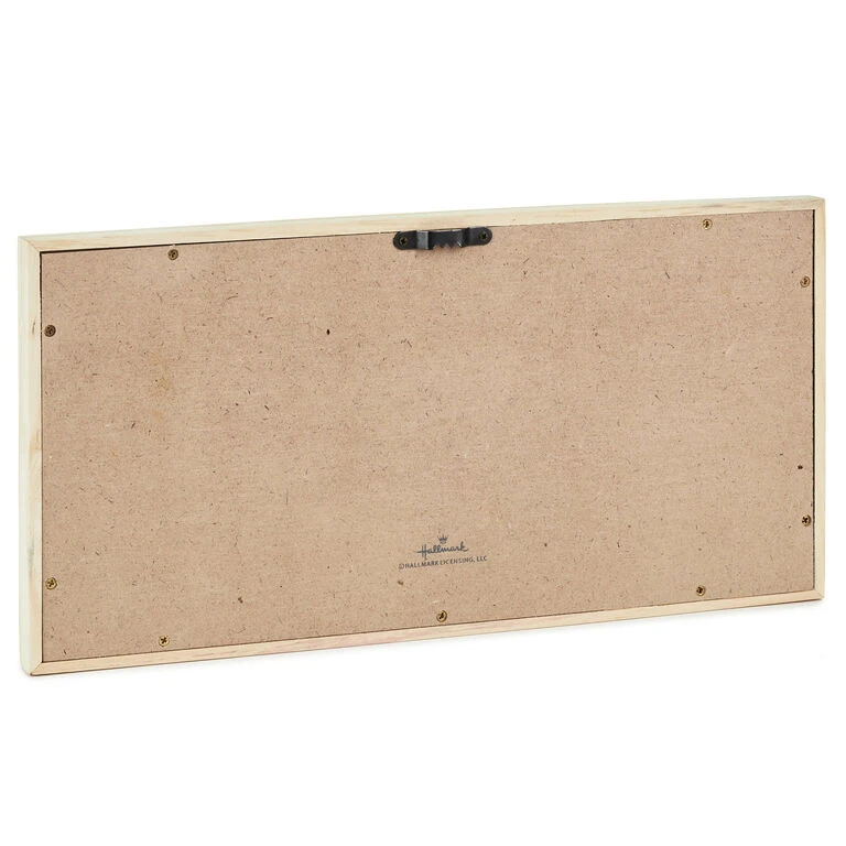 Shine a light on your family-sized happiness with this fun wood quote sign decorating a wall. Whether you hang it in a home office, kitchen or family room, you’re sure to appreciate the sentiment from any cozy corner. Gold foil message on white-washed wood features a painted black background with etched diagonal lines and a natural wood frame that suits any decor.