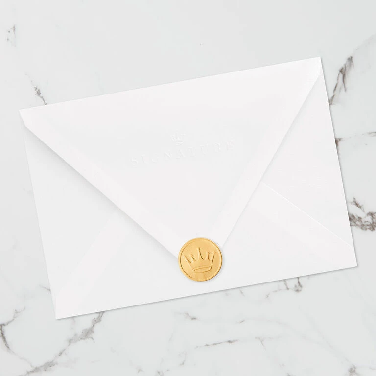 - Includes one card and one lined envelope with a Gold Crown seal. Envelope color may vary.